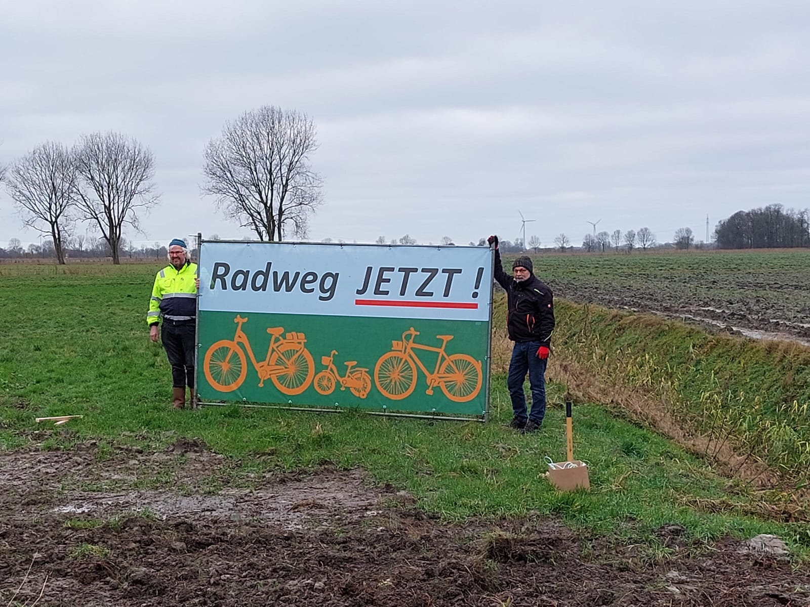 Anwohnerinnen und Anwohner schließen sich zusammen mit der Forderung, wenn Sanierung, dann mit Radweg. Außerdem fordern sie einen Radweg an der gesamten 10 km langen Strecke von Süderneuland bis Grimersumer Neuland.