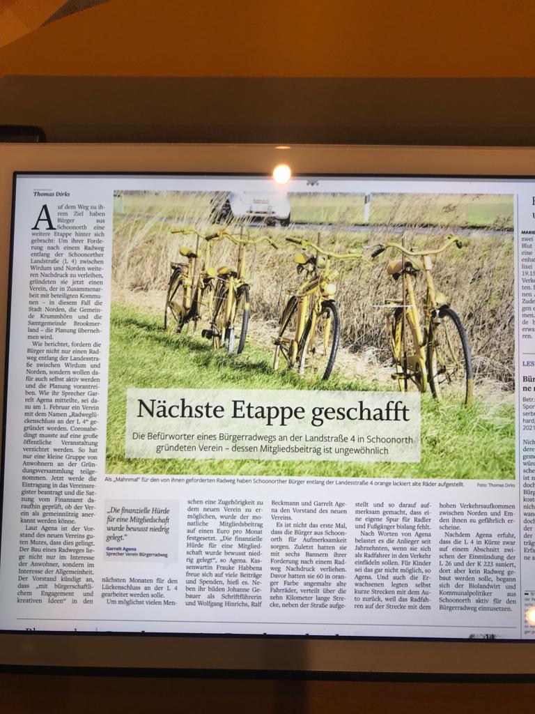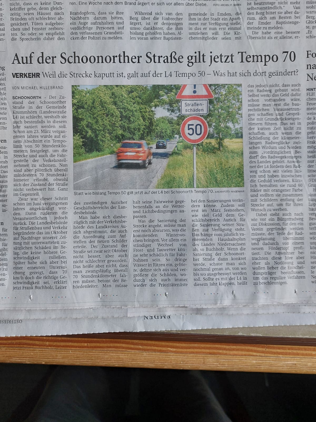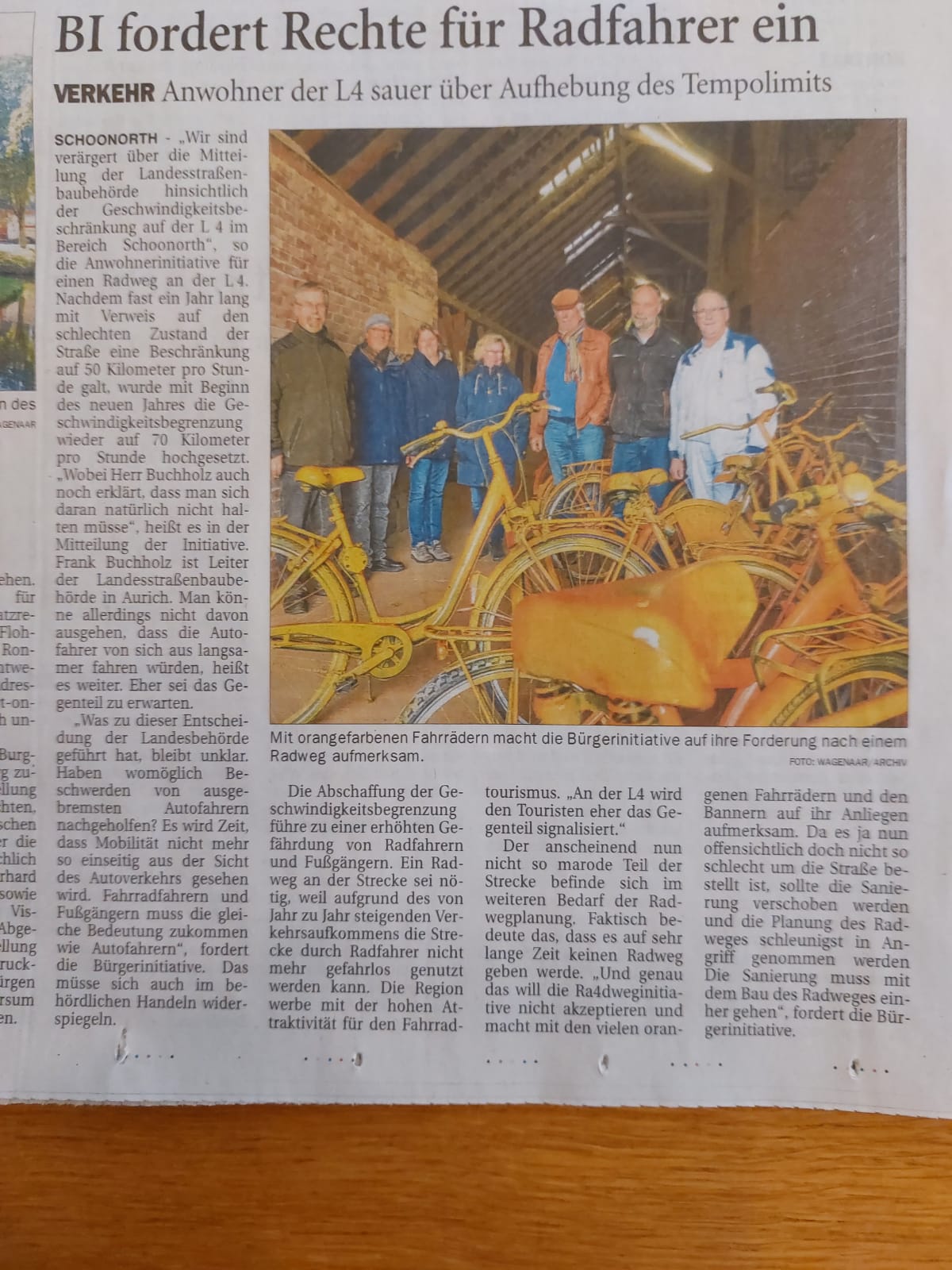 Die örtliche Presse berichtet von den Plänen der Landesbehörde für Straßenbau in Aurich, die Sanierung der L4 im Bereich Schoonorth im Frühjahr 2022 durchzuführen.