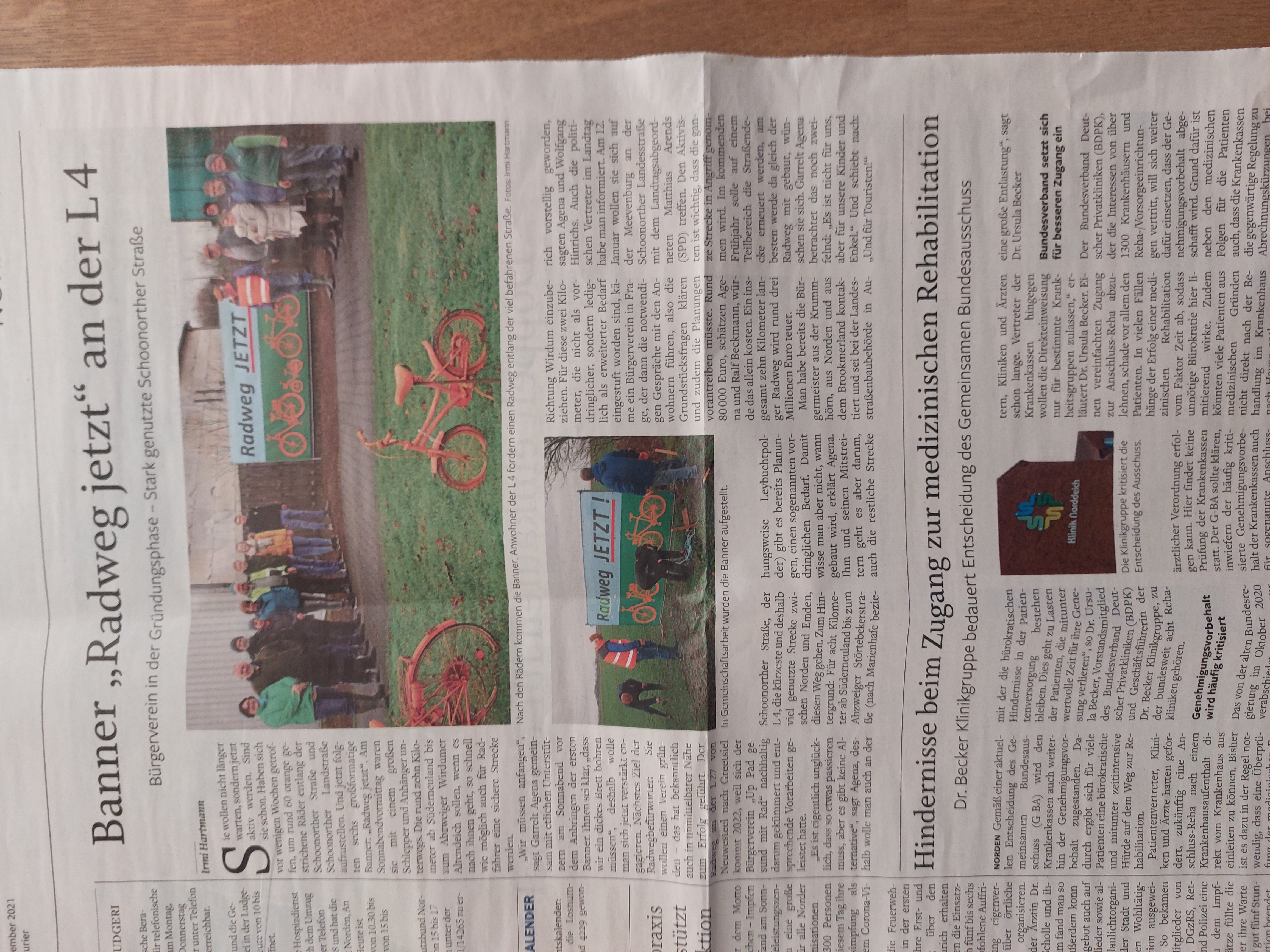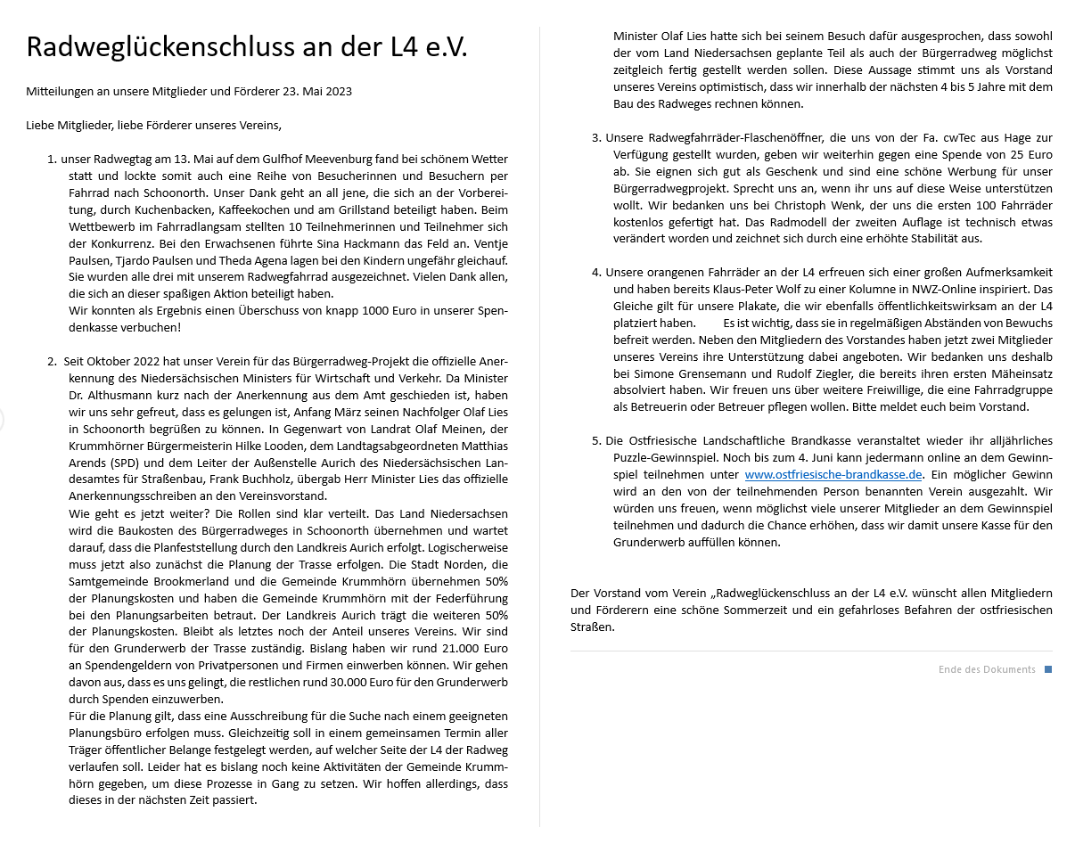 Liebe Mitglieder, Förderinnen und Förderer und Unterstützerinnen und Unterstützer unseres Vereins „Radweglückenschluss an der L4 e.V.“,