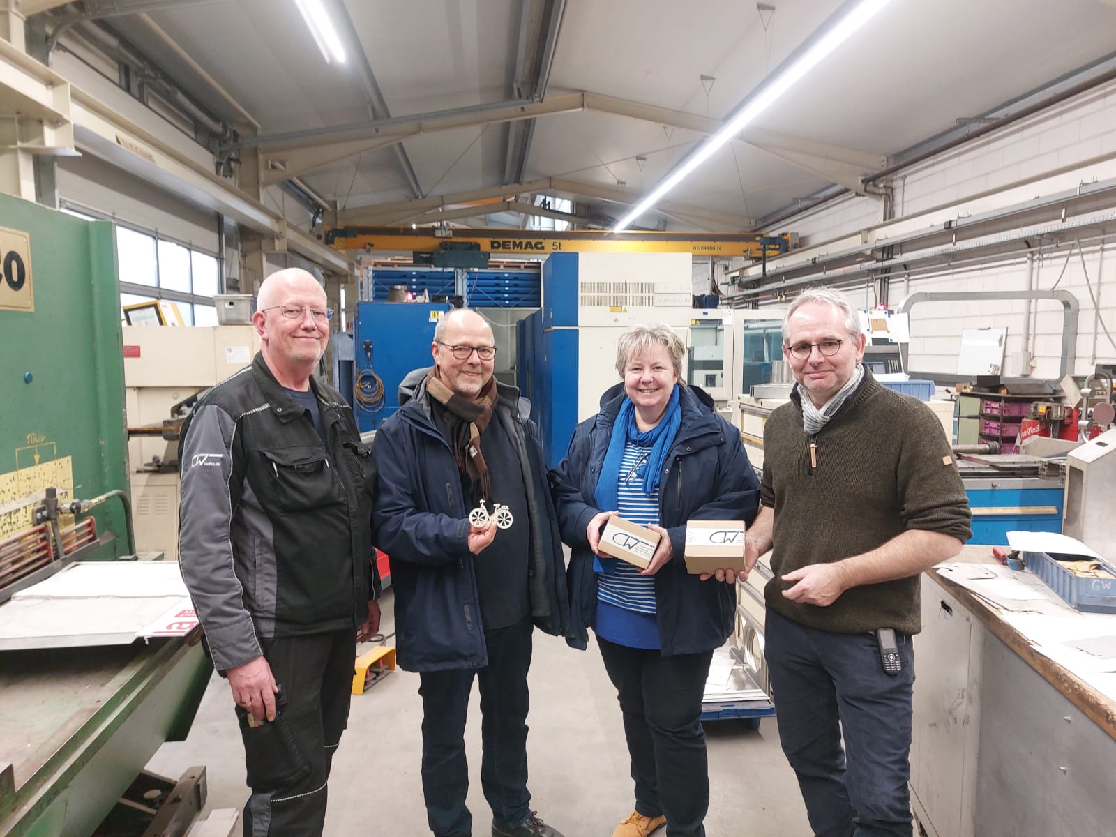 anfertigen, die als Flaschenöffner benutzt werden können. Der Verein wird diese originellen Flaschenöffner gegen eine Spende abgeben. „Wir sind beeindruckt von den technischen Innovationen in diesem Betrieb und freuen uns über die tolle Unterstützung“, sagte Vereinsvorsitzender Garrelt Agena nach einer Betriebsbesichtigung und anschließender Spendenübergabe.