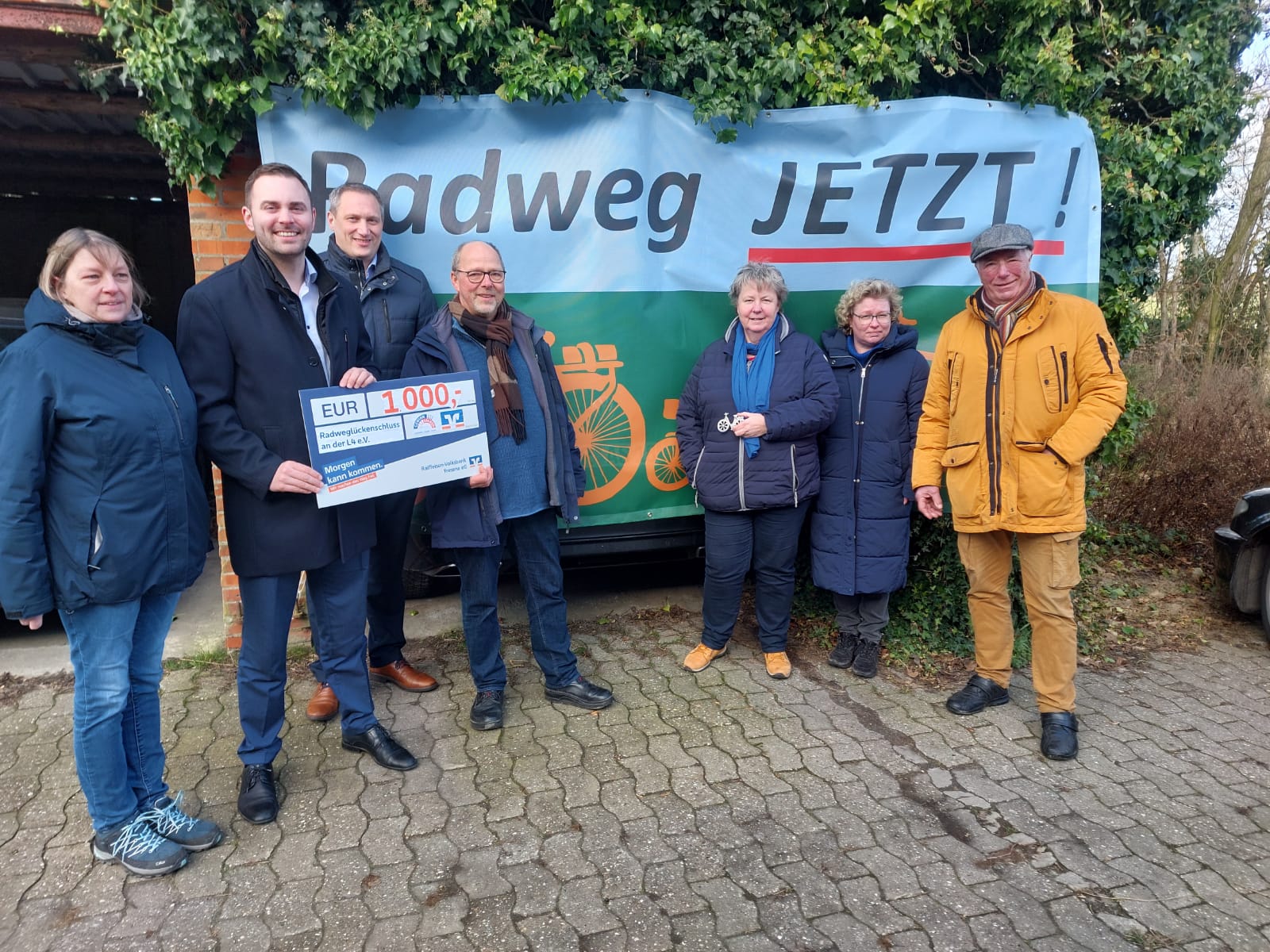 Elf Monate sind seit der Gründung unseres Vereins vergangen. Wir sind stolz auf das bislang Erreichte. Kurz vor Weihnachten und kurz vorm Jahreswechsel ist Zeit, zum Innehalten und für ein Wort des Dankes an alle, die uns in den vergangenen Monaten unterstützt haben. Auf Plattdeutsch sagt man: „Vööl Hannen maken licht Wark“. Das heißt auf hochdeutsch frei übersetzt: „Wenn viele mithelfen, können wir viel schaffen“. Und genauso ist es in den vergangenen Monaten auch bei uns gewesen. Viele Kuchen wurde gebacken, viel Kaffee gekocht, viele Würstchen gegrillt, viel organisiert, viel telefoniert, viel geredet und überlegt—und immer waren viele Leute beteiligt, die sich in ihrer Freizeit ehrenamtlich eingebracht haben und dadurch mitgeholfen haben, dass wir unser Ziel erreichen: die Realisierung des Fahrradweges an der L4. Für unser Projekt Bürgerradweg hat jetzt die Zeit des Spendensammelns begonnen. Zum Ende des Jahres kratzen wir wahrscheinlich an der 10.000 Euro-Marke. Da sollten dann die letzten 40.000 Euro auch zu schaffen sein: Allen Spendern sind wir dankbar für die Unterstützung. Wir freuen uns über jede Spende, ganz gleich in welcher Höhe.