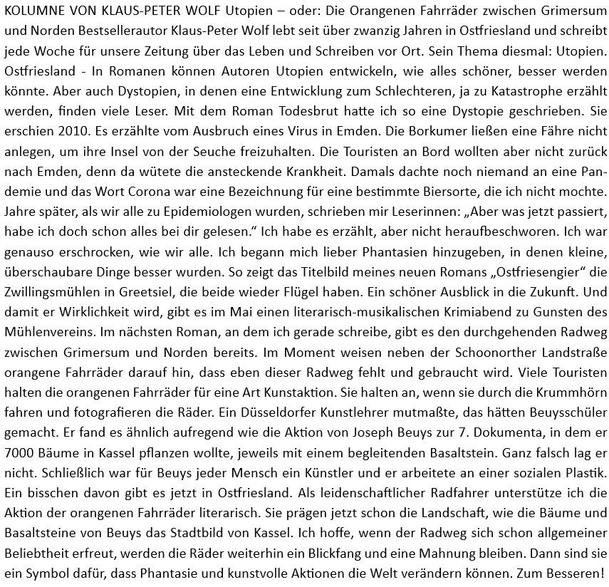 Klaus Peter Wolf unterstützt den Radweglückenschluss literarisch